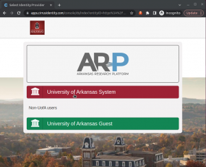 1. Open arp-ood.hpc.uark.edu and select “University of Arkansas System” button